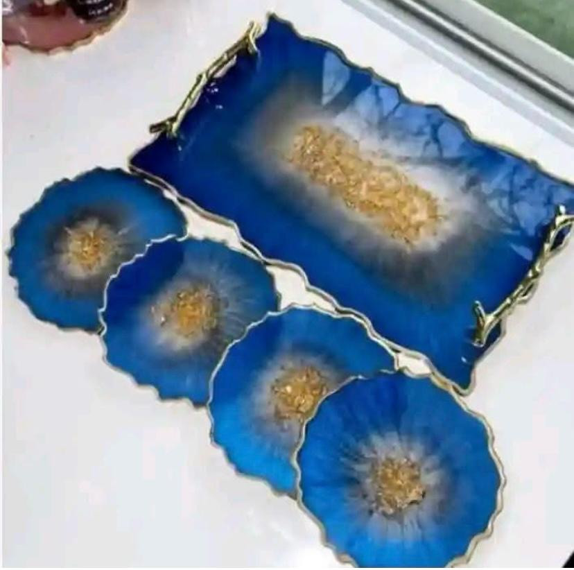 Tray with Gold Handles & Matching Coasters Option, Versatile Accent Resin Agate Decor, Perfume Platter for Vanity, Entryway Catchall